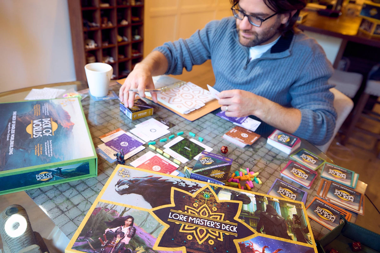 Generate endless stories, explore limitless horizons, and spin eternal lore with the ultimate storytelling, worldbuilding, and lore weaving bundle. This 2,208-card collection comes with The Story Engine Deck, Deck of Worlds, and Lore Master’s Deck, and every single booster and expansion we’ve released with all three systems.