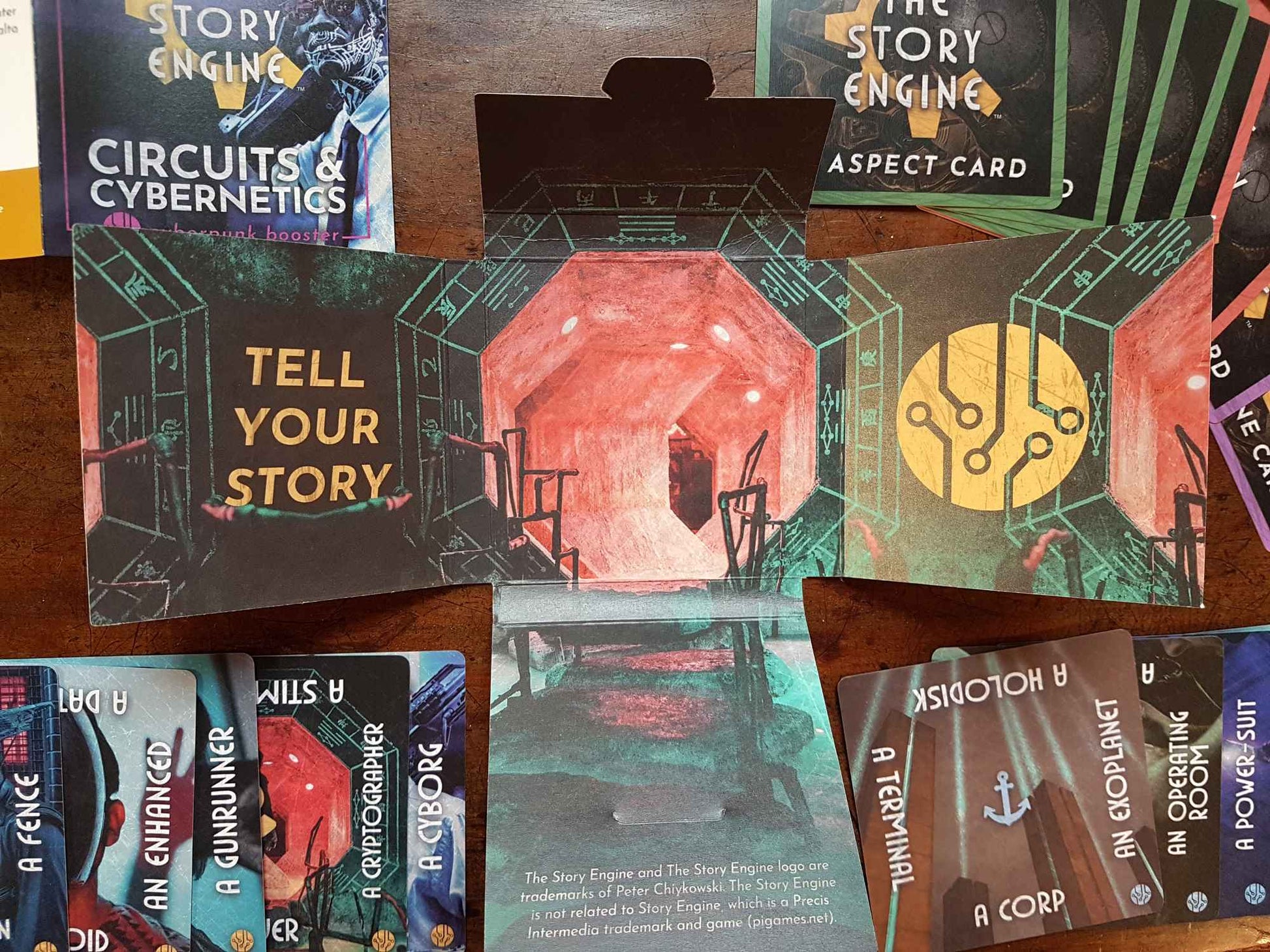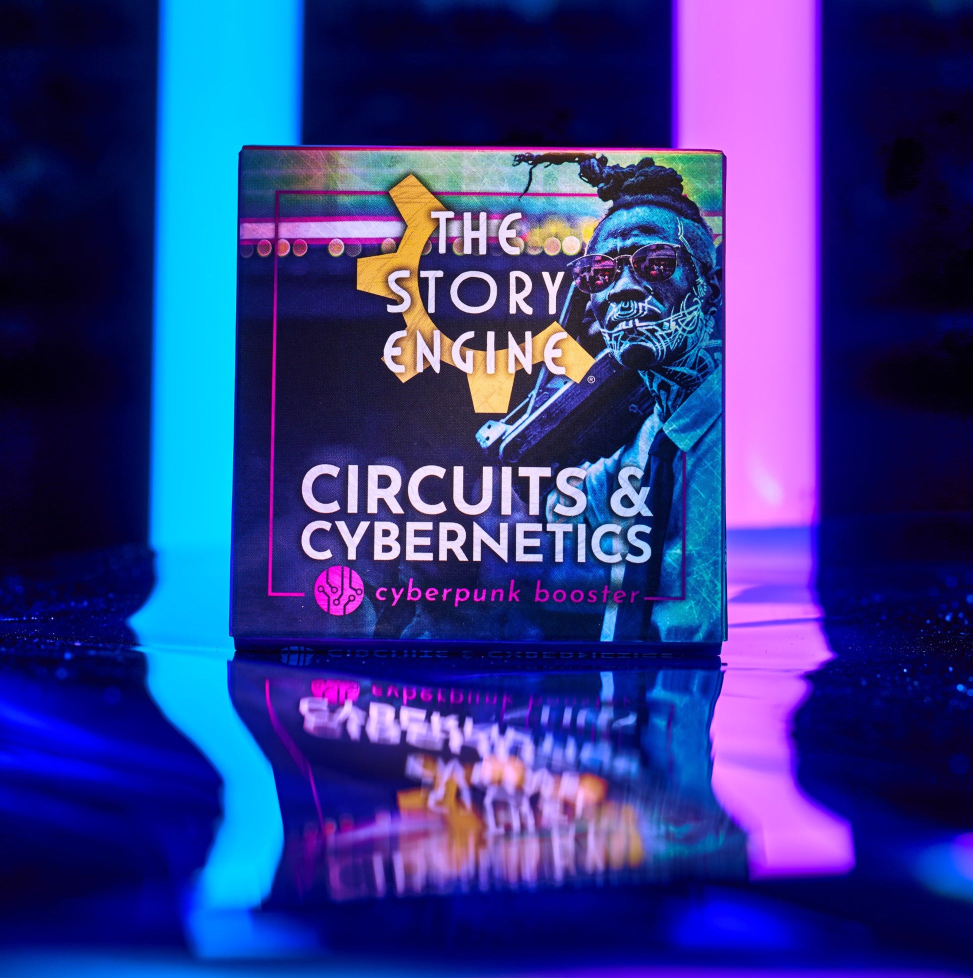 Hack the planet with this 18-card cyberpunk booster for The Story Engine. These high-speed prompts plug you into a world of cyborgs, cyberspace junkies, corporate overlords, and black market information brokers. Download the truth before it gets deleted in Circuits & Cybernetics.