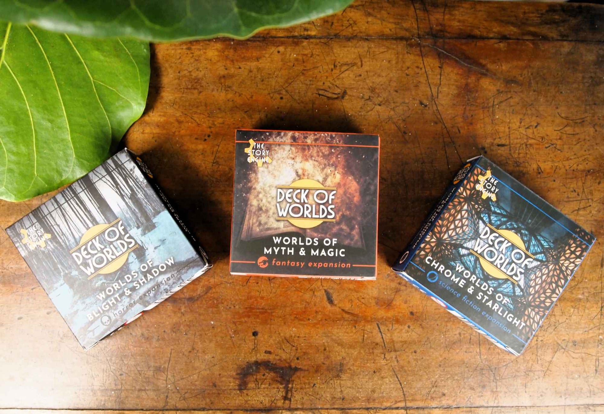 This bundle includes physical and PDF copies of the Deck of Worlds and its 3 Genre Expansions.