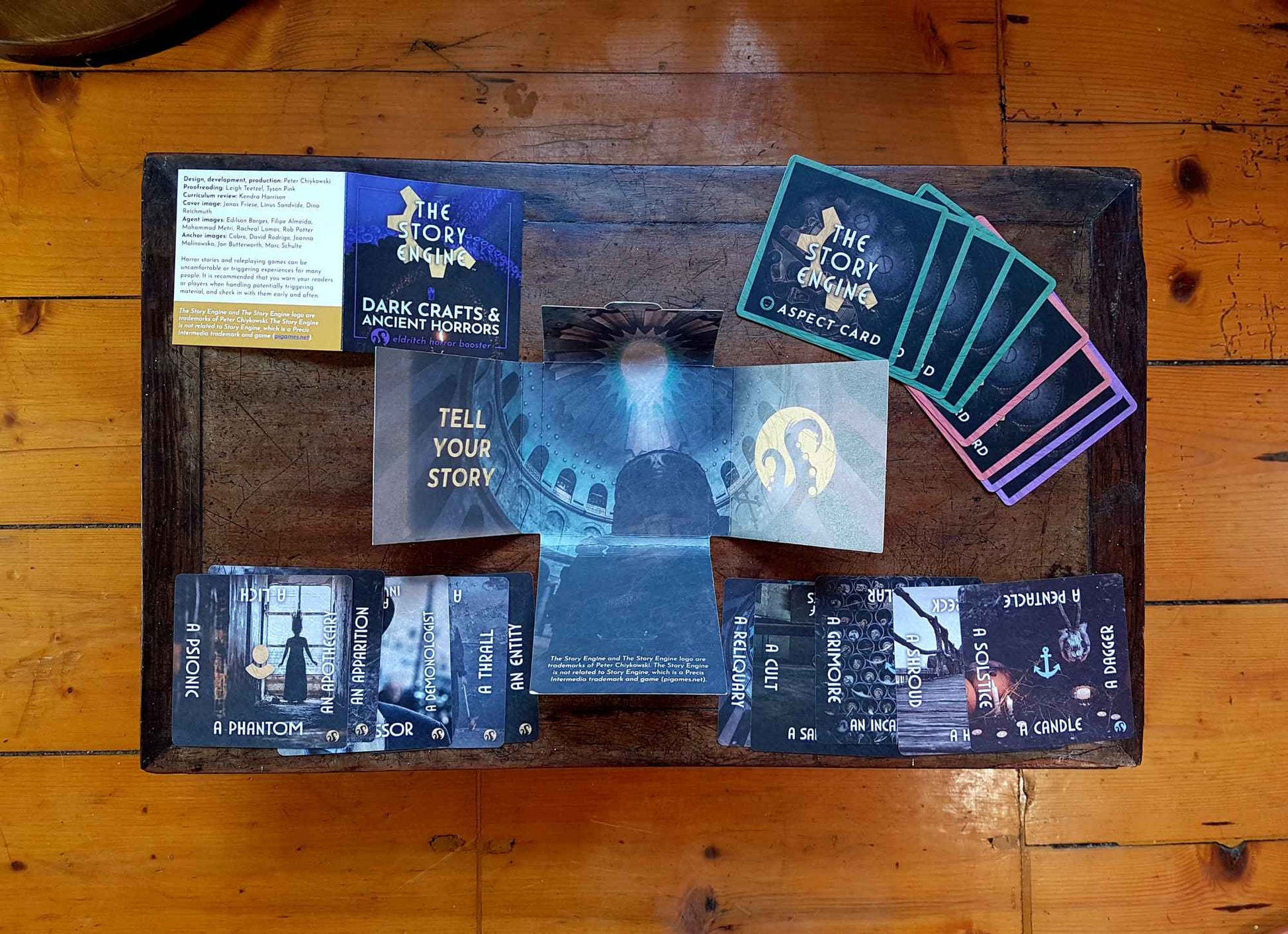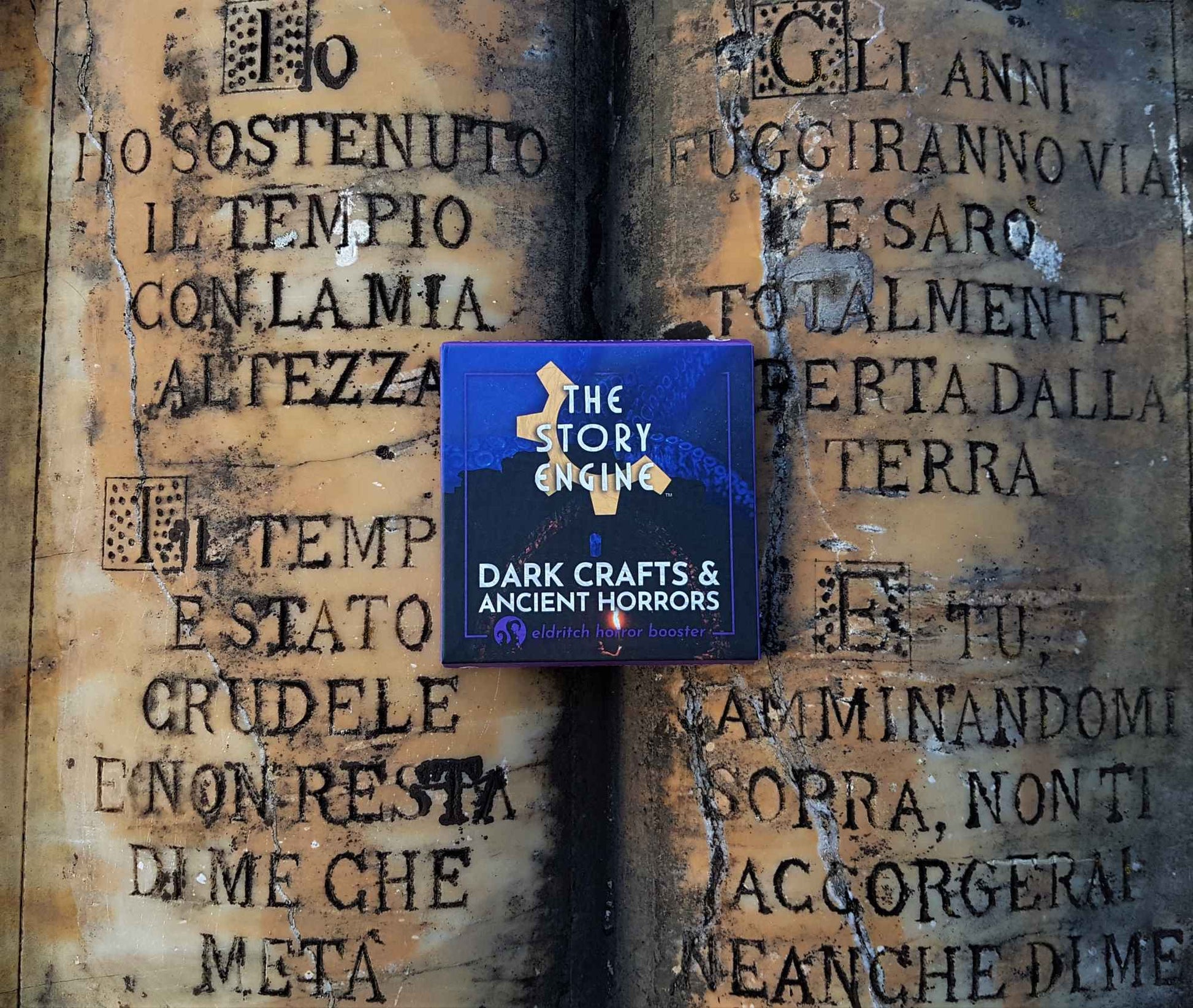 Gaze into the infinite void with this 18-card eldritch horror booster for The Story Engine. These unspeakable prompts induce nightmares with cults, catacombs, and dark arcane rituals. See if you can cling to sanity in Dark Crafts & Ancient Horrors.