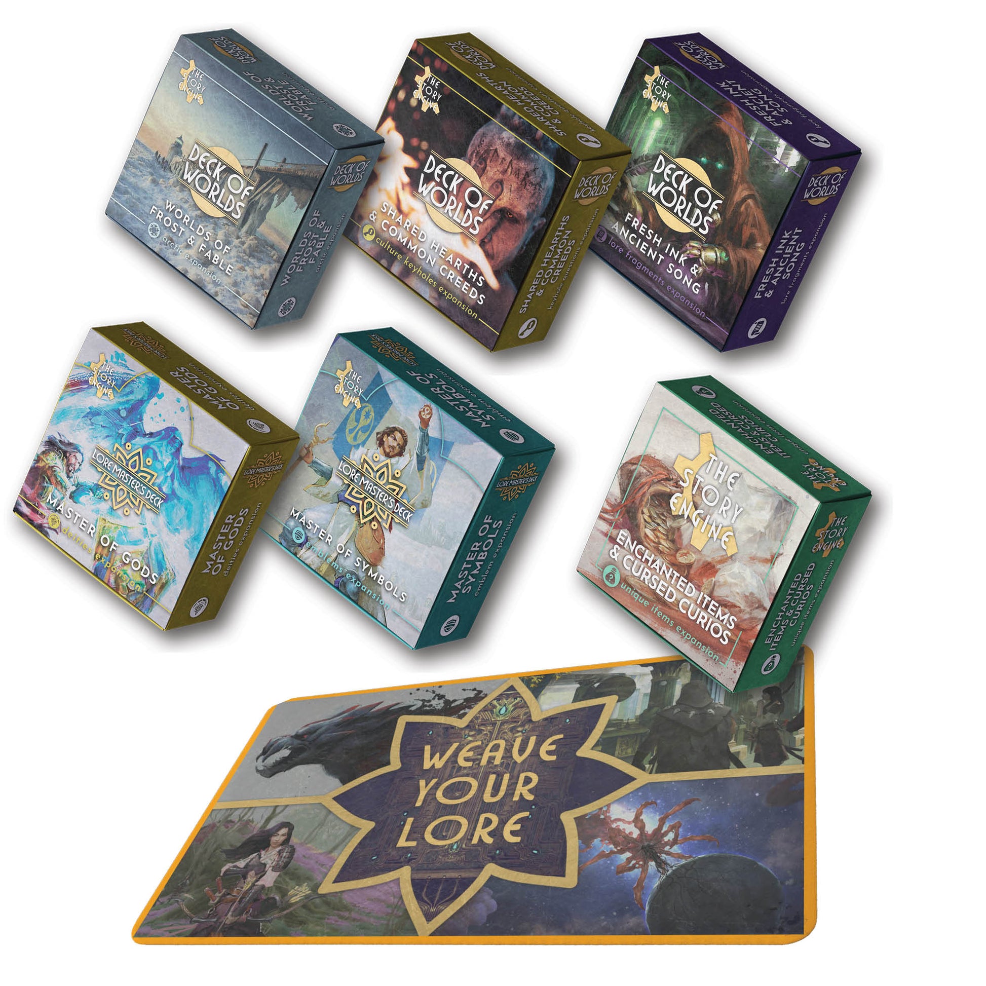 NOTE: This bundle features expansions and accessories only. It works best if you already own Lore Master's Deck (required), Deck of Worlds (recommended), and The Story Engine Deck (recommended). Add them to your order to get the most value out of your bundle.