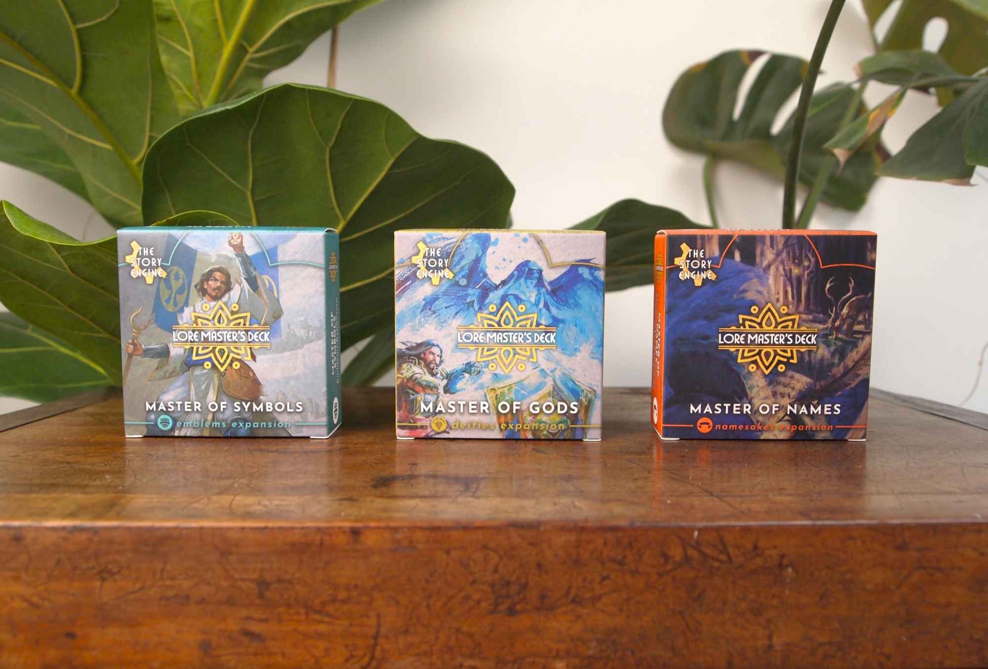 Elevate your worldbuilding with dynamic gods, memorable names, and evocative symbols with three 60-card expansions for Lore Master's Deck. This set adds new card types and prompt formats to our existing system to help you create lore elements that stick in people’s minds. Go beyond words—and unleash the divine power of names—with the Lore Mastery Expansion Set.