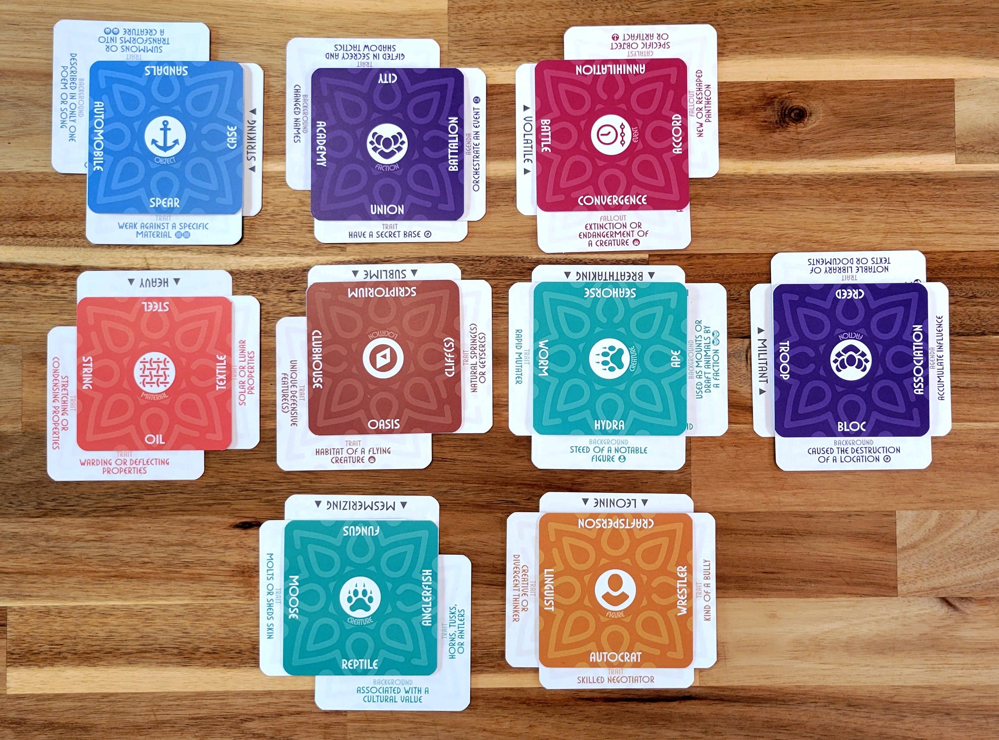 Tie your world together with our 300-card deck of lore prompts! This print-and-play PDF version of The Story Engine: Lore Master’s Deck gives you instant access to our comprehensive and user-friendly prompting system. The deck's 8 double-sided card types help you weave intricate lore tapestries that include everything from influential factions and notorious figures to world-shaping events, epic locations, one-of-a-kind objects, valuable materials, and legendary creatures.