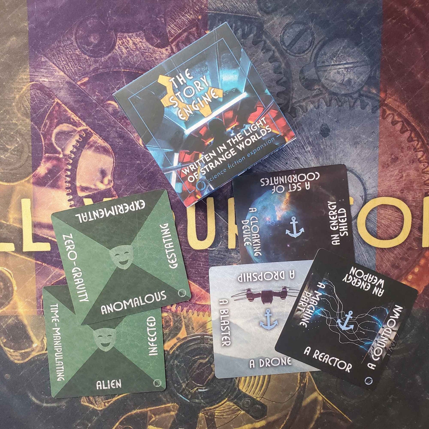Sci-fi can be a challenging genre to write thanks to the fact that it heavily relies on a strong and innovative core concept to succeed. You can find tons of good sci-fi plot ideas using the cards from The Story Engine Science Fiction Writing Prompts Expansion, which can create over 100,000 different ideas to choose from.
