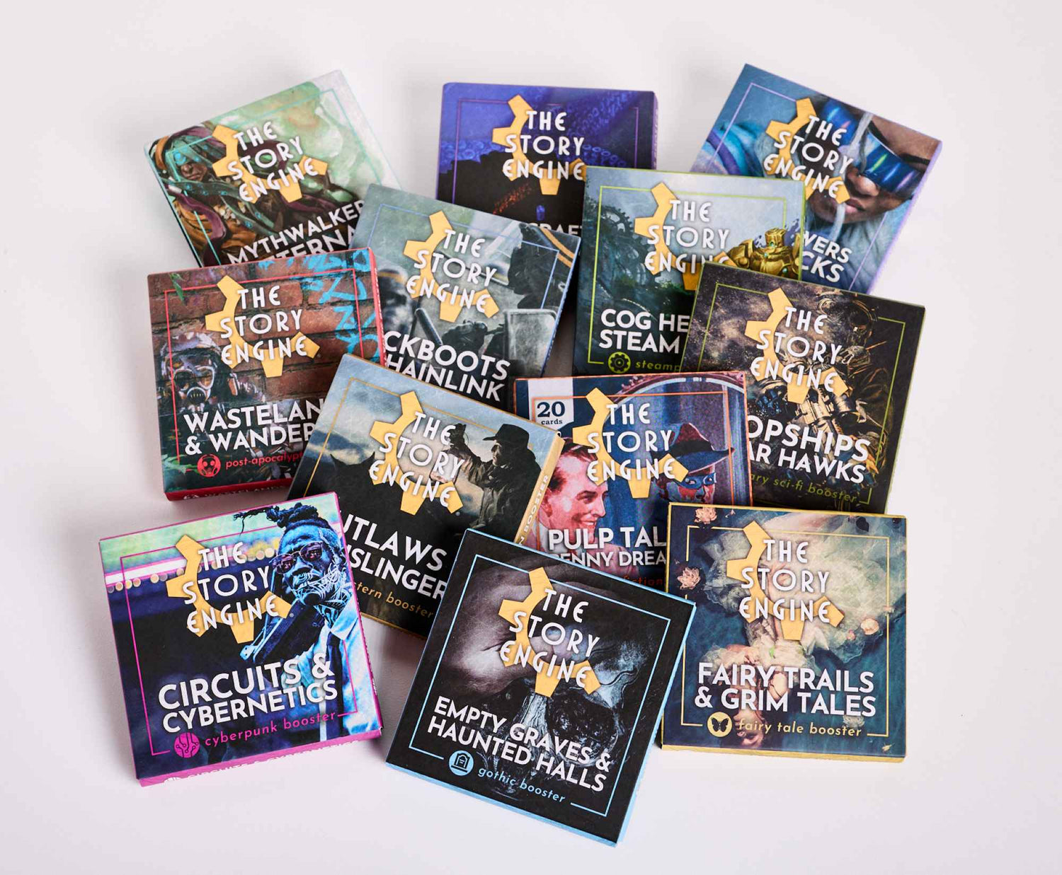 This powerhouse collection gives you limitless ways to generate ideas, shape unforgettable characters, explore new worlds, and develop plots that feel rich and alive. From the grounded to the fantastical, the familiar to the wildly imaginative, each deck and booster set gives you a new lens for discovery.